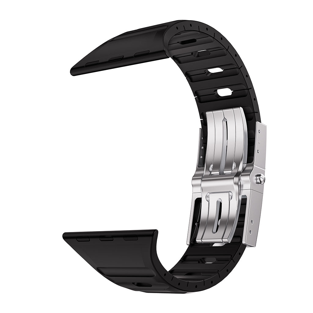Premium FKM Fluororubber: Crafted from high-density fluoroelastomer, this band is more than just rubber. It is heat-resistant, oil-resistant, and incredibly soft against the skin, offering a "liquid-smooth" feel that remains comfortable through intense workouts and long days.